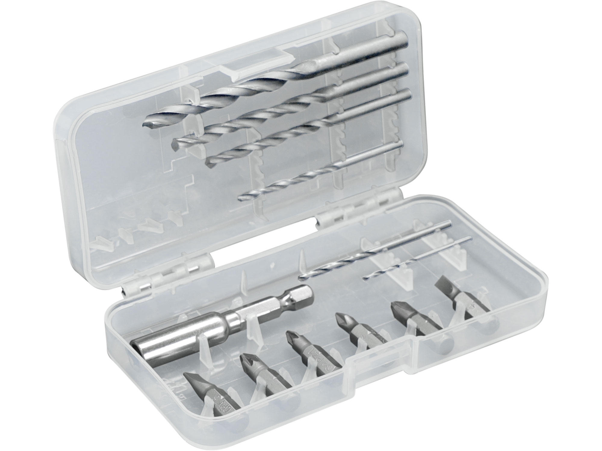 velká sada vrtáků a bitů dovoluje okamžitě začít pracovat