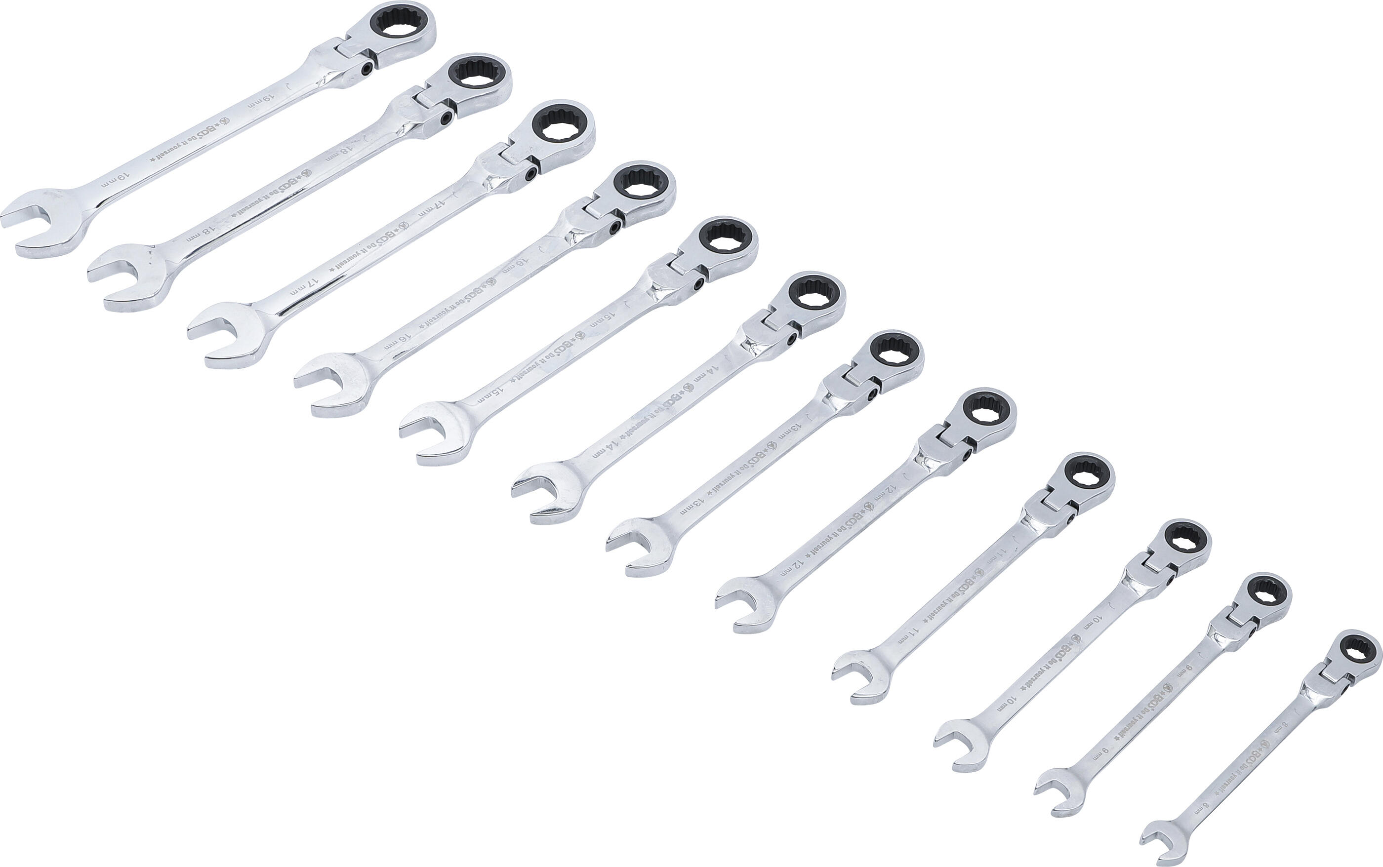 Sada oboustranných očkoplochých klíčů s ráčnou a kloubem, rozměry 8 až 19 mm, 12 dílů v tetronovém obalu – BGS Do it yourself 30002
