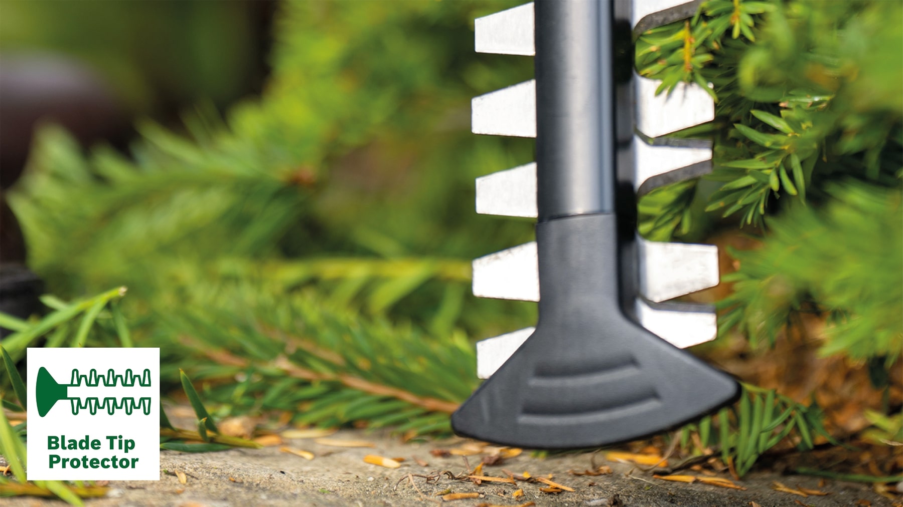 Bezpečné stříhání podél stěn a cestičekOchrana špice lišty umožňuje bezpečné stříhání podél zdí a cestiček. |