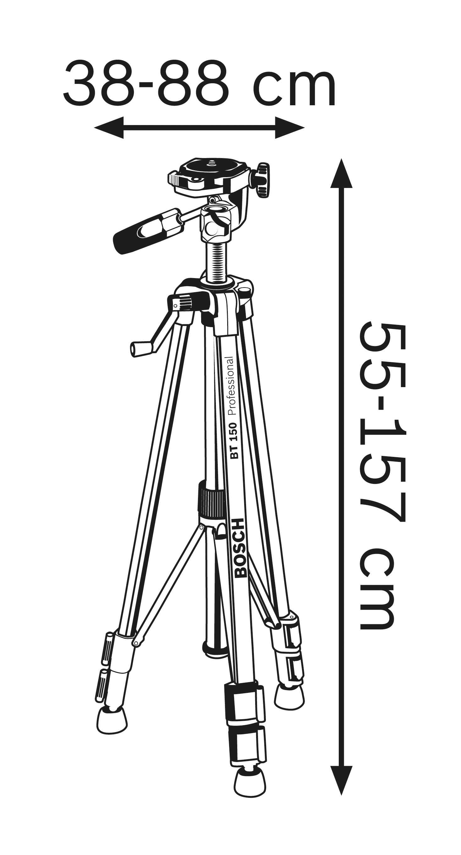Stativ Bosch BT 150 Robustní hliníkové provedení Pro pracovní výšky 55 až 157 cm Funkčnost a přesnost díky krabicové libele
