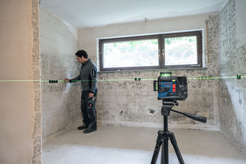 Laser GLL 12V-100-33 CG je nepostradatelným nástrojem pro všechny profesionály ve stavebnictví a interiérových instalacích, kteří potřebují rychle a přesně vyrovnávat velké prostory. Je ideální pro: