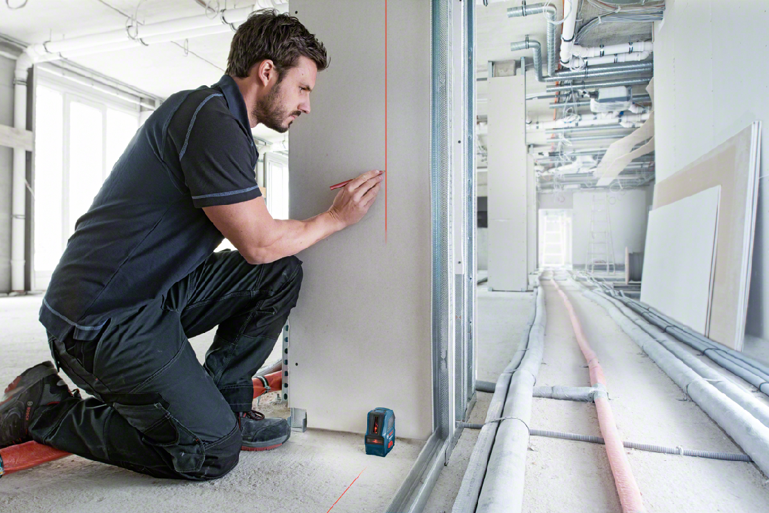 Čárový laser Bosch GLL 2-10 je vhodný na celou škálu různých druhů použití v interiéru, jako je montáž podhledů, polic, dveří, zásuvek či odpadního potrubí a pokládku dlažby.