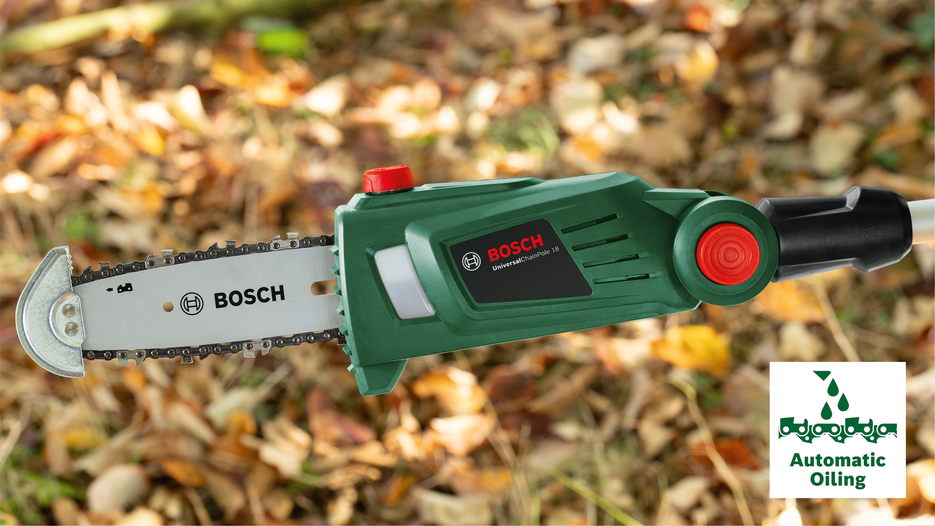 Prořezávejte větve stromů ze země bez námahy a bez použití žebříku. UniversalChainPole 18 umožňuje snadné prořezávání v jinak nedostupných místech s teleskopickou tyčí a otočnou hlavou. Vyvážená, lehká a ergonomická konstrukce minimalizuje namáhání paží a ramen. Chránič špice a zubová opěrka zaručují maximální kontrolu při řezání a podřezávání. Automatické promazávání řetězu a indikátor hladiny oleje zajišťují hladký chod nářadí a konzistentní výsledky. Používejte UniversalChainPole 18 pro nepřetržité řezání bez poškození stromů. Toto nářadí patří do POWER FOR ALL ALLIANCE. Jeden akumulátor může pohánět širokou škálu nářadí různých značek.