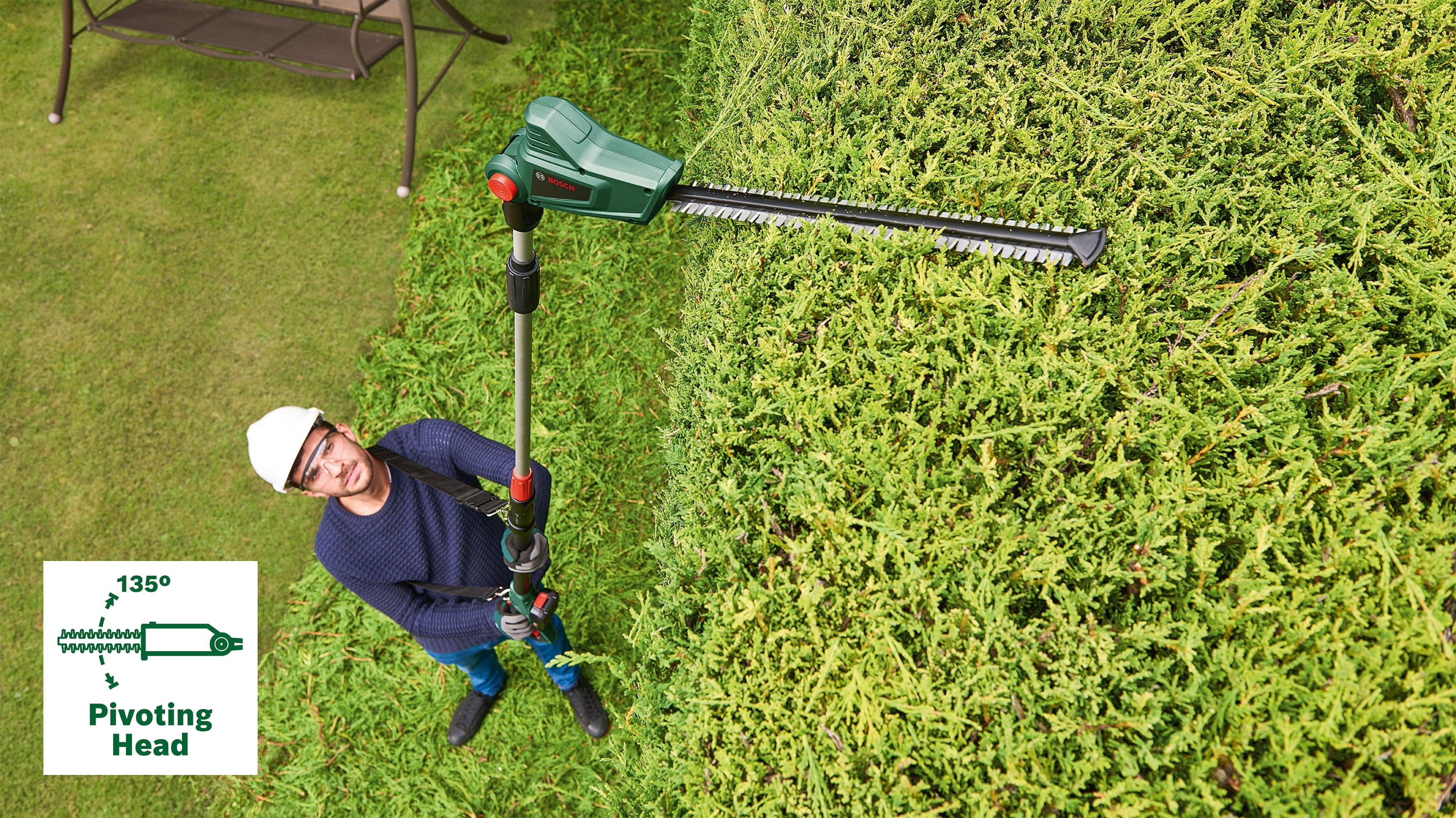 - Dokonalý výkon a dosah na zastřihování vysokých živých plotů bez námahy
