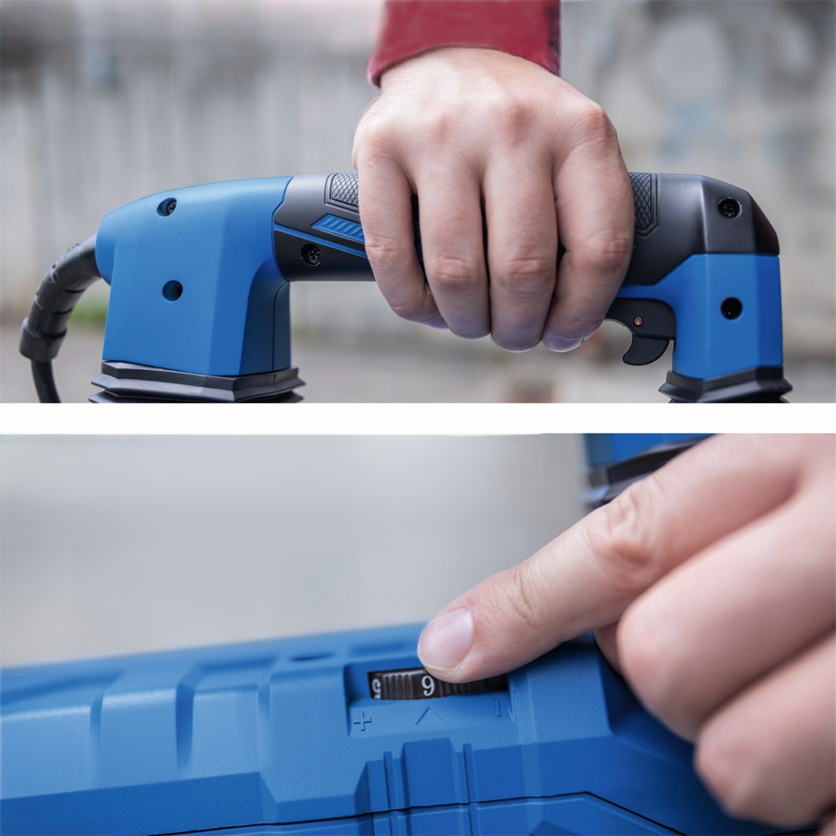 Regulace umožňuje nastavit optimální sílu podle typu práce. Nižší frekvence je vhodná pro citlivější odstraňování omítek nebo dlaždic, zatímco maximální frekvence s energií 60 J bleskově rozruší silný beton.