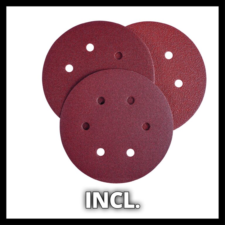 Výrobek je dodáván s 6 listy brusných papírů (2x zrnitost P80 / P100 / P120 každý), jednou vsuvkou a jedním klíčem.