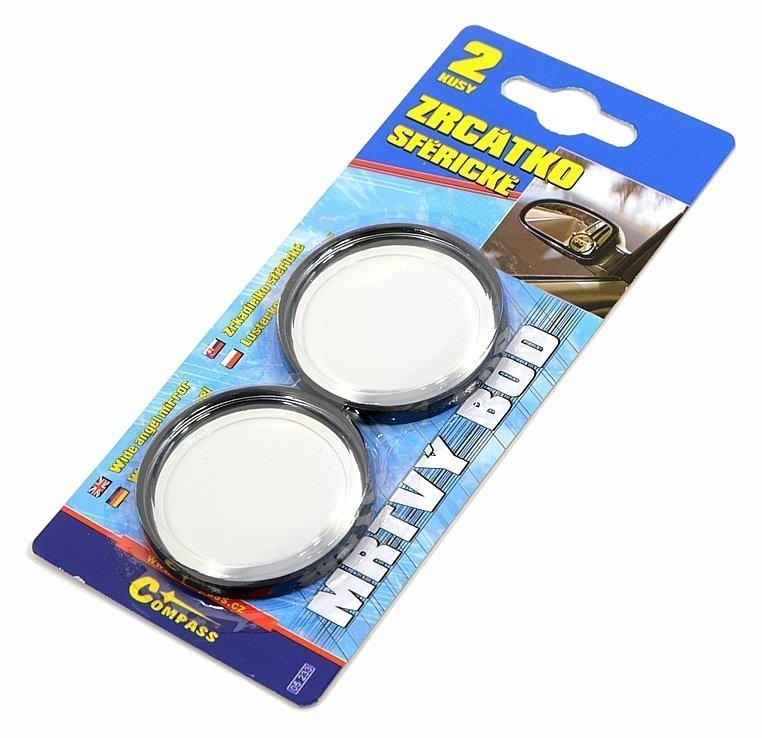 Kulatá panoramatická zrcátka na vnější zpětná zrcátka, průměr 55 mm, sada 2 kusy – COMPASS 05233 Speciální druh vypouklých zrcátek pro zmenšení tzv. mrtvého bodu ve vnějších zpětných zrcátkách automobilů, motorek atd. Jednoduchá instalace nalepením.