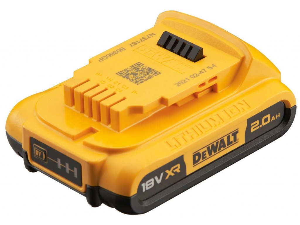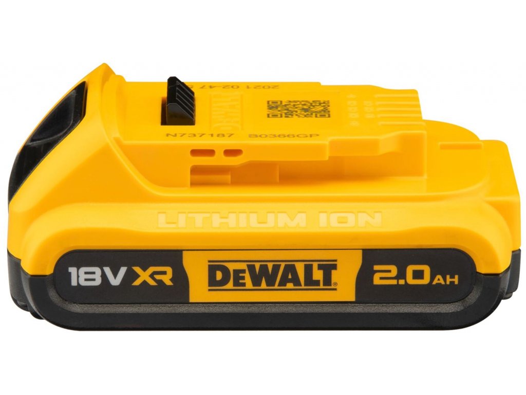 - Baterie DEWALT s technologií XR Li-Ion s kapacitou 2,0 Ah nabízí prodlouženou provozní dobu a optimalizovaný výkon umožňující rychlé dokončení pracovních úkonů
