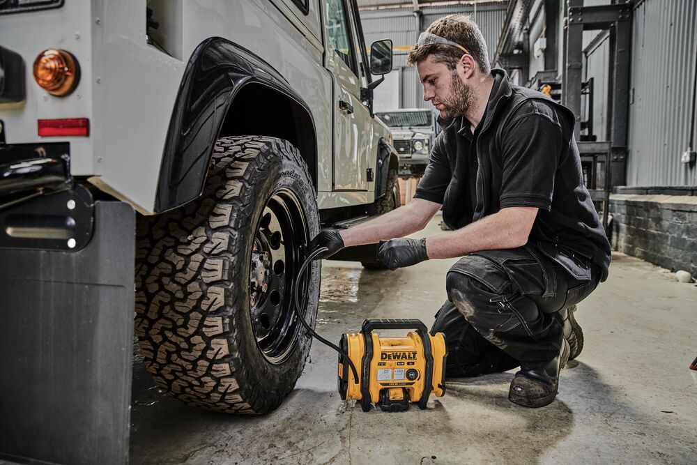 - Tři možnosti napájení: 230 V, 12 V autozapalovač nebo akumulátor DeWALT 18V (není součástí balení)