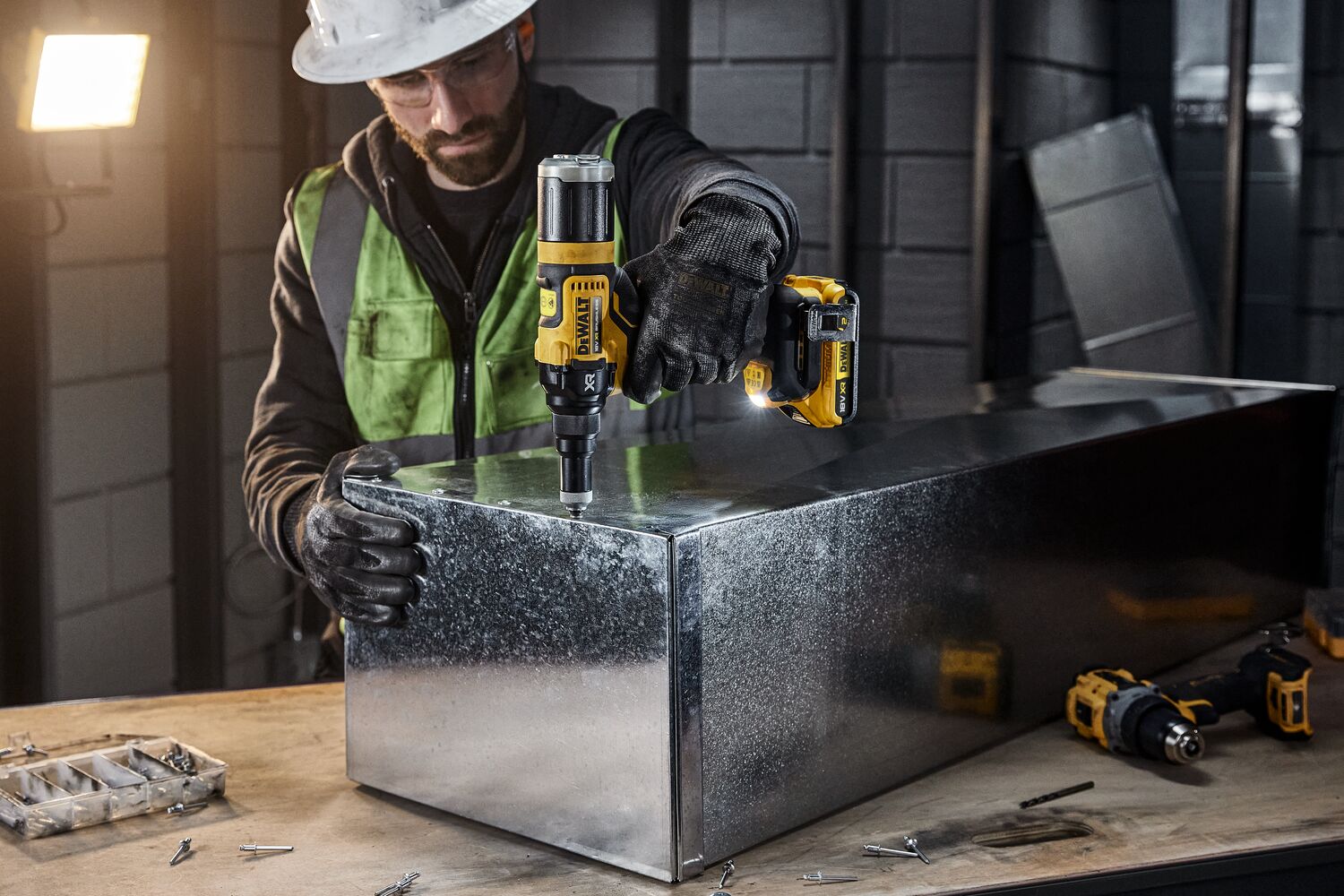 - Akumulátorová nýtovací pistole 18V XR, která usnadňuje nýtování díky vysokým hodnotám rychlosti i výkonu