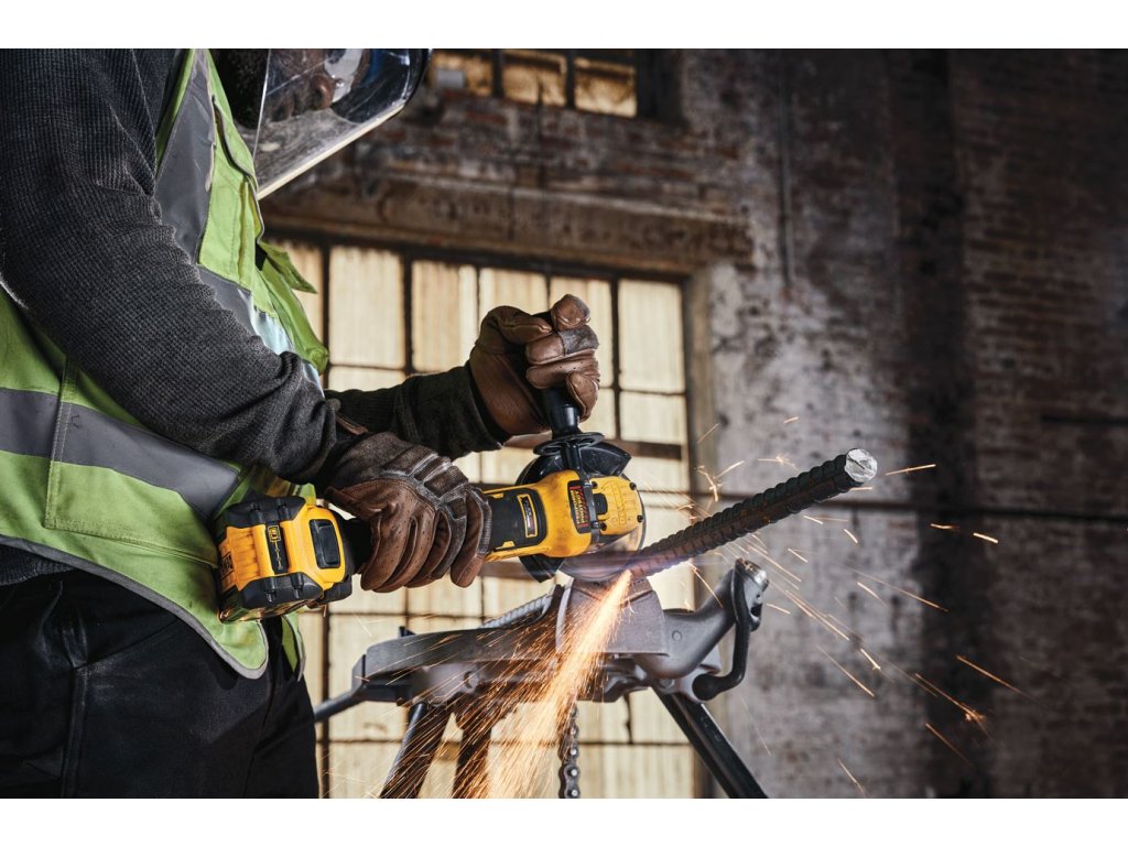 - Bruska DCG409 je vybavena moderním účinným bezkartáčovým motorem s technologií E-CLUTCH, který chrání motor před přetížením, automaticky vypíná nástroj.