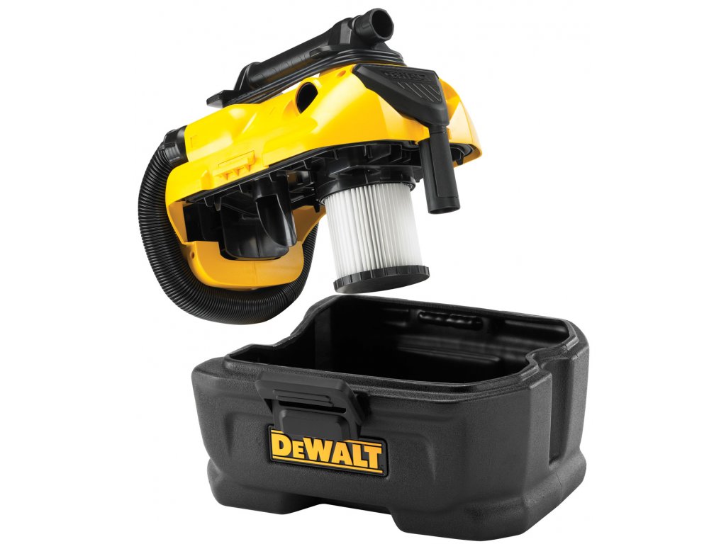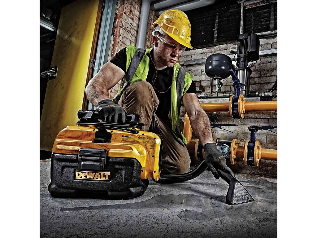 - Vysavač pracuje se všemi akumulátory XR 14,4 V a 18 V nebo s FLEXVOLT akumulátorem 54 V, lze napájet i z běžné síťové zásuvky