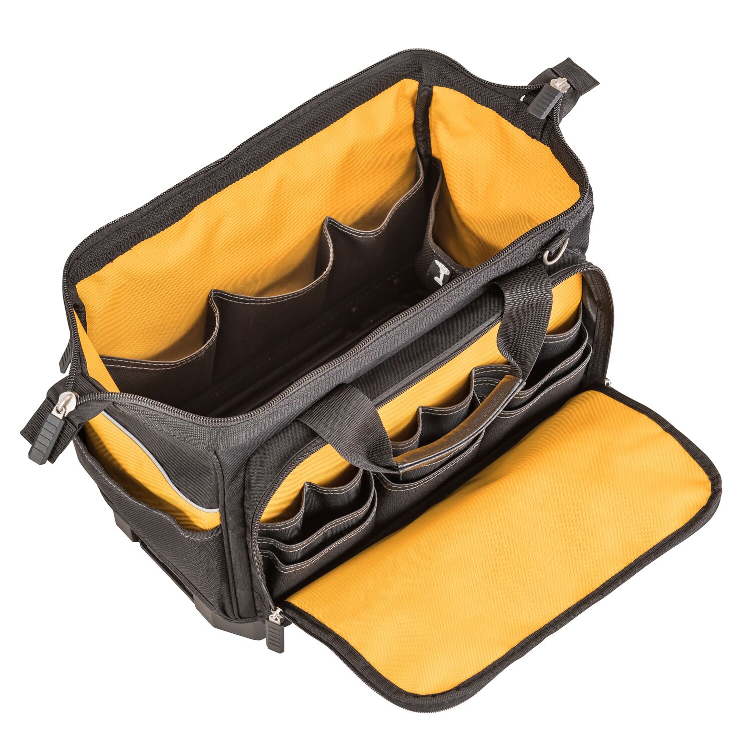 - Inteligentní taška na nářadí s vyhrazenými drážkami pro všechny typy nástrojů, elektrické nářadí a malé nástroje.