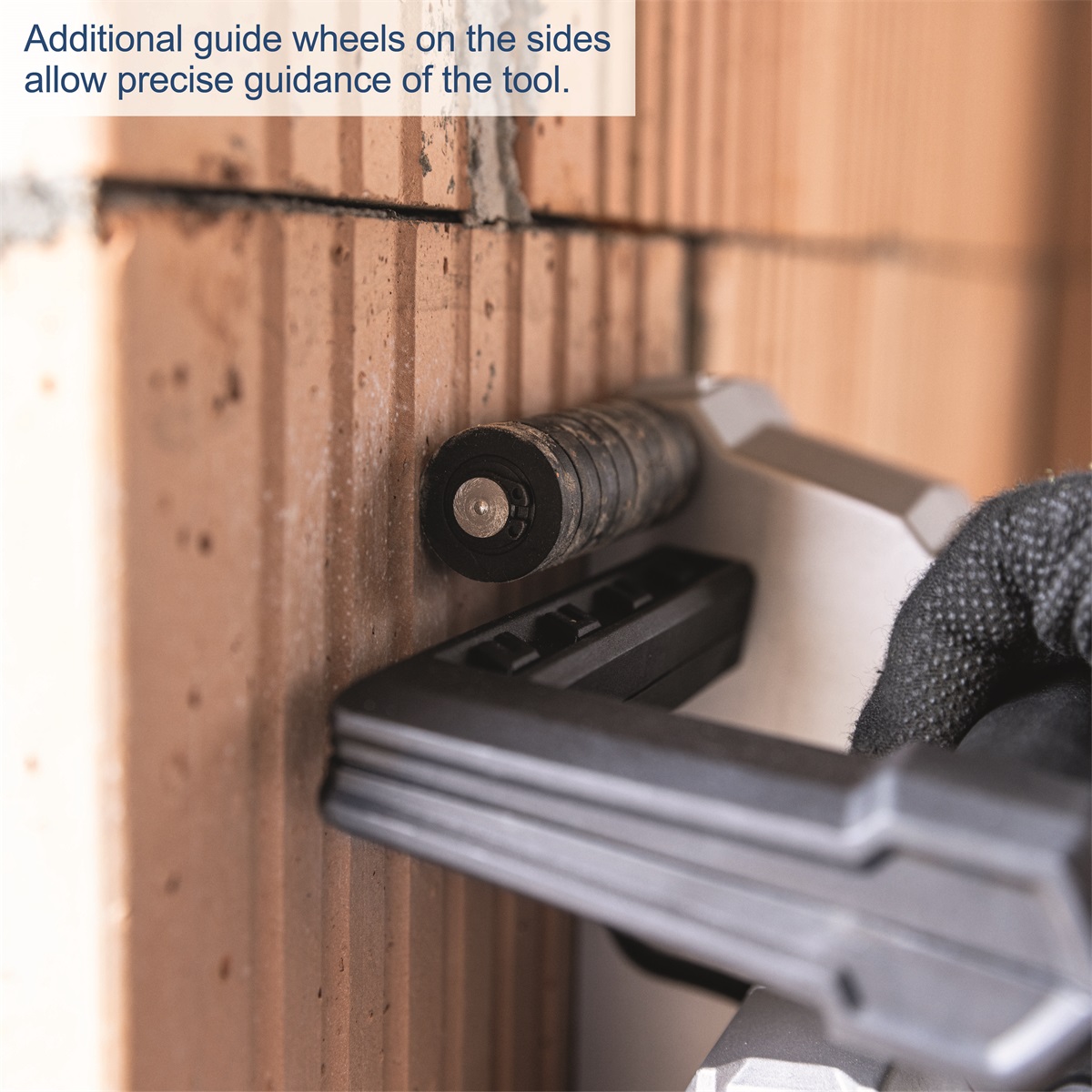 - Přesné vedení: Přídavná vodicí kolečka zajišťují precizní a rovné drážky.