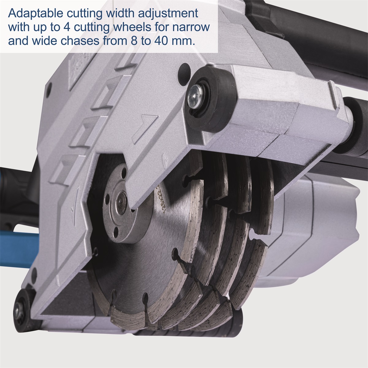 - Nastavitelná šířka drážky (8-40 mm) pomocí až 4 diamantových kotoučů.
