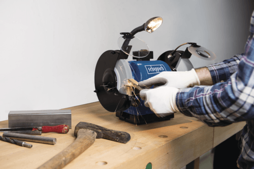 - Broušení a ostření menších nástrojů: Nožů, nůžek, dlát, sekáčů, vrtáků (s použitím vhodných přípravků) a dalšího kovového nářadí.