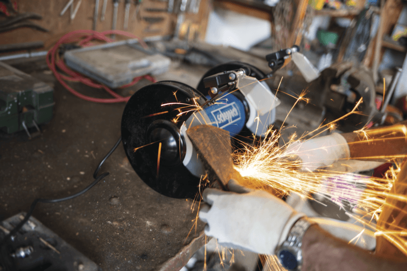 - Broušení a ostření: Různých typů nástrojů jako jsou nože, nůžky, dláta, sekáče, vrtáky (s použitím vhodných přípravků), zahradní nářadí a další kovové předměty.