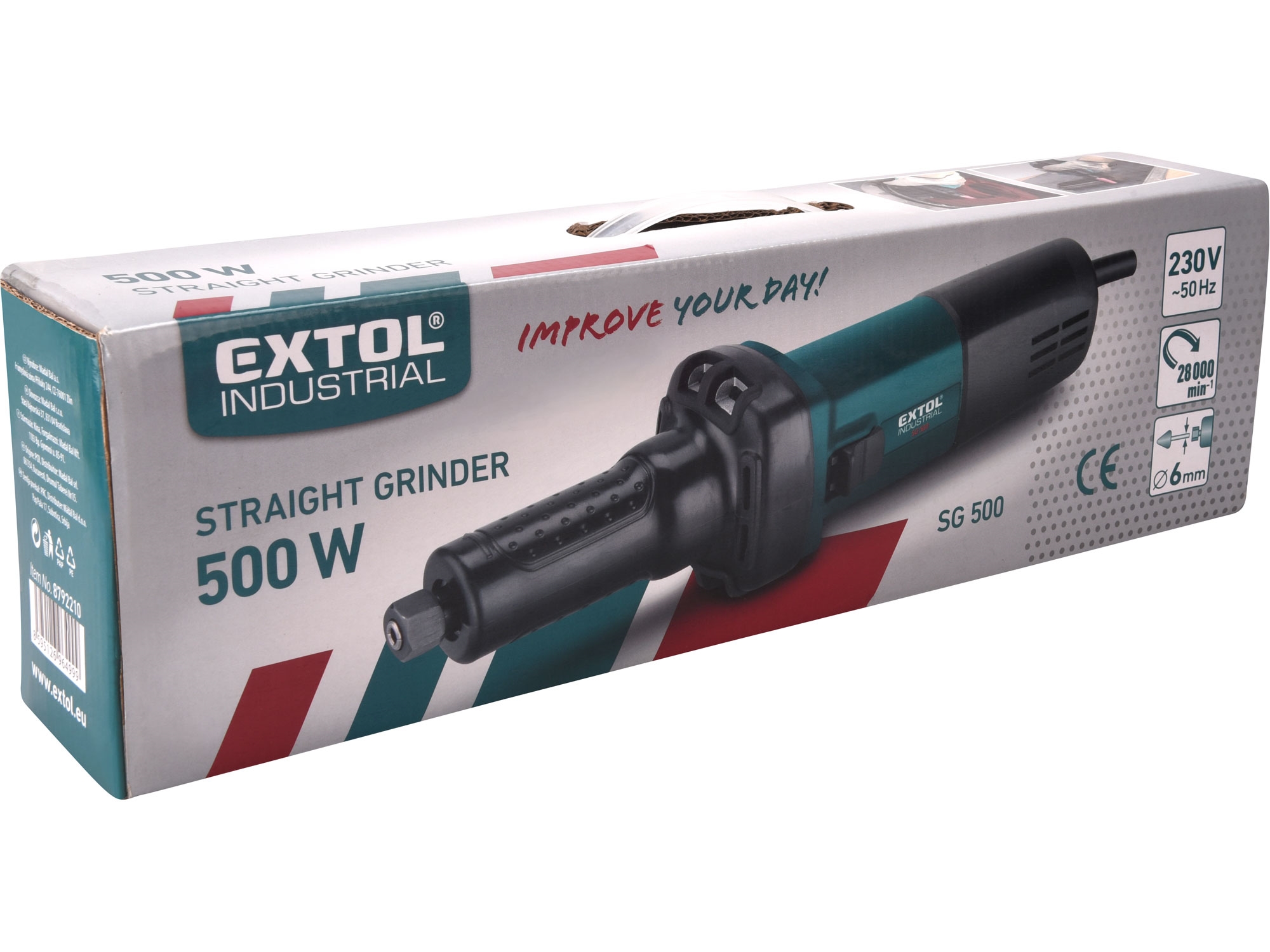 Přímá bruska EXTOL INDUSTRIAL SG 500 je určené k broušení a odstraňování otřepů z kovu s korundovými brusnými nástavci a pro práci s nástavci s brusným pásem, pro broušení brusným papírem a pro frézování.