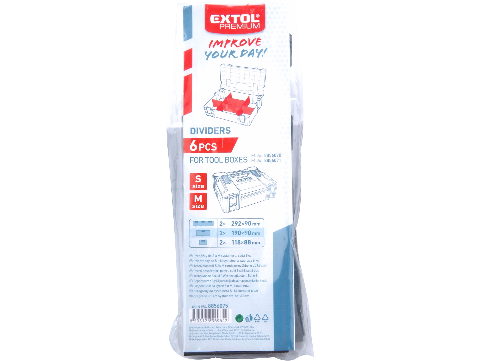 | Doplňující parametr | umožňují rozdělení vnitřního prostoru boxu na více částí, obsah balení 2ks-292x90mm, 2ks-190x90mm, 2ks-118x88mm |