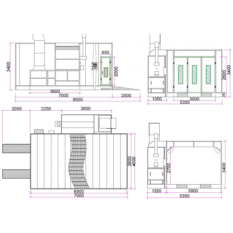 Lakovací a sušící kabina s instalačním podlahovým rámem. Výměna vzduchu 25 000m3/hod. 3 stupně filtrace vzduchu, LED osvětlení a rekuperační výměna tepla s ohřevem Reillo Italy. {gformbuilderpro:2}