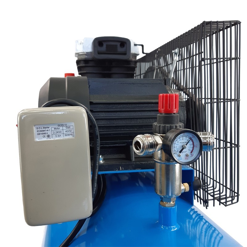 Nízkootáčkový průmyslový dvoupístový kompresor vhodný pro pneuservis. Tlaková nádoba 160 l, motor 2,2 k. W, tlak 8 baru.