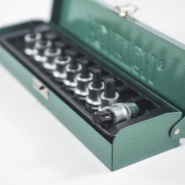 Sada hlavic Honiton TRX T20–T60 představuje nekompromisní řešení pro vnitřní hvězdičkové profily. Zatímco menší 1/4″ bity často při povolování zarezlých šroubů pruží nebo praskají, tato sada postavená na upínacím čtyřhranu 1/2″ nabízí absolutní tuhost. Je navržena tak, abyste se mohli do nářadí opřít i s dlouhou ráčnou nebo vratidlem. Bity jsou v ořeších pevně nalisovány pod vysokým tlakem, což eliminuje jakoukoliv vůli a zajišťuje, že veškerá vaše síla směřuje přímo do středu šroubu. Ideální volba pro výměnu hlavových šroubů, opravy brzd nebo demontáž součástí podvozku u moderních evropských vozů.