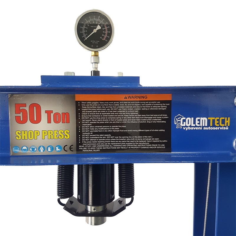Pneumaticko-hydraulický lis s tlakem 50 tun. Pro lisování, stlačování apod. vhodný zejména do autodílen. Jednoduchá a pohodlná obsluha. Tento dílenský lis 50 t je vybaven tlakoměrem a navijákem pro snadný pohyb pracovního stolu.