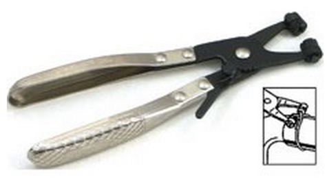 Speciální kleště pro snadné nasazování a sundávání pérových samosvorných spon na hadice. Konce čelistí pro uchycené spon jsou otáčecí s křížovým výřezem (s prohloubením uprostřed pro tenké drátové spony) a rozsahem rozevření až 55 mm. Kleště mají pětistupňovou aretaci, při demontáži spony zůstávají sevřené, což umožňuje snadnou manipulaci.