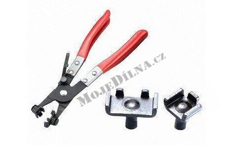 Speciální kleště na demontáž pružných spon na hadice. Přesně tvarovaný profil čelistí pro spolehlivé uchycení a sevření spony. V sevřeném stavu nesklouzávají ze spony.