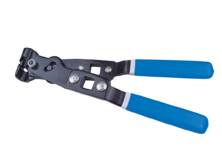 Speciální nástroj na utahování zamačkávacích nerezových pásek (spon) na manžety poloos, homokinetických kloubů, hadic chladícího a palivového systému apod.