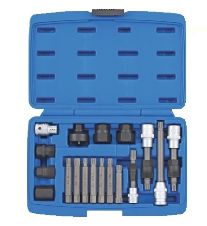 Technické parametry:- vyrobeno z chrom-vanadové oceli (Cr-V)- celkem 18 různých bitů, klíčů, nástavců, hlavic a adaptérů pro servis alternátorů