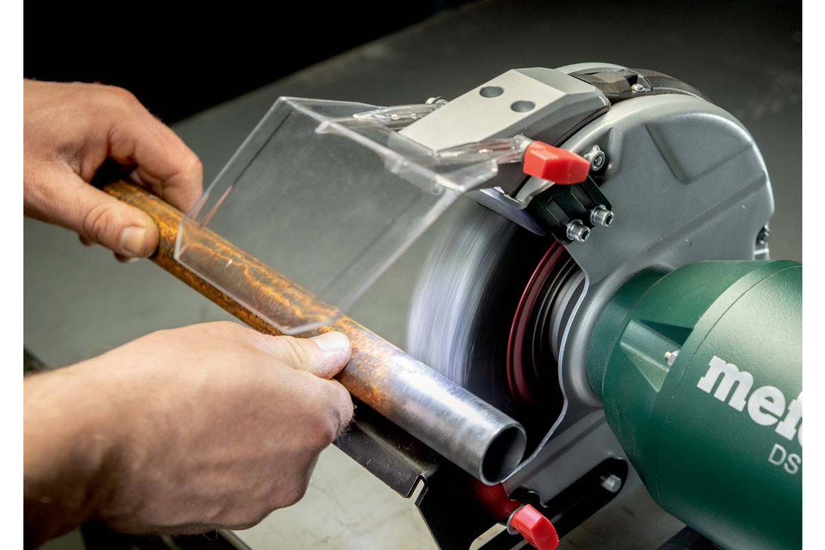 Metabo DS 150 plus je výkonný stroj zkonstruovaný pro náročné úkoly v oblasti ostření a broušení. Srdcem brusky je spolehlivý a tichý bezúdržbový indukční motor, který minimalizuje vibrace a hluk. Stroj disponuje integrovaným LED osvětlením, které zajišťuje optimální viditelnost pracovního prostoru i v horších světelných podmínkách. Díky vysoce kvalitním přírubám je chod kotoučů maximálně hladký, což prodlužuje jejich životnost. Bezpečnost obsluhy garantují extra velká skla s ochranou proti jiskrám a stabilní opěrky obrobku nastavitelné bez nářadí.