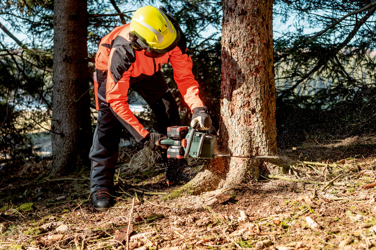 - Výkonná akumulátorová řetězová pila pro rychlé, rovnoměrné řezy při kácení, ořezávání větví, zkracování na délku a stavění ze dřeva