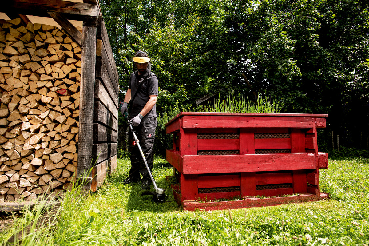 - Jednoduché přestavení struny krátkým ťuknutím na knoflík cívky během práce