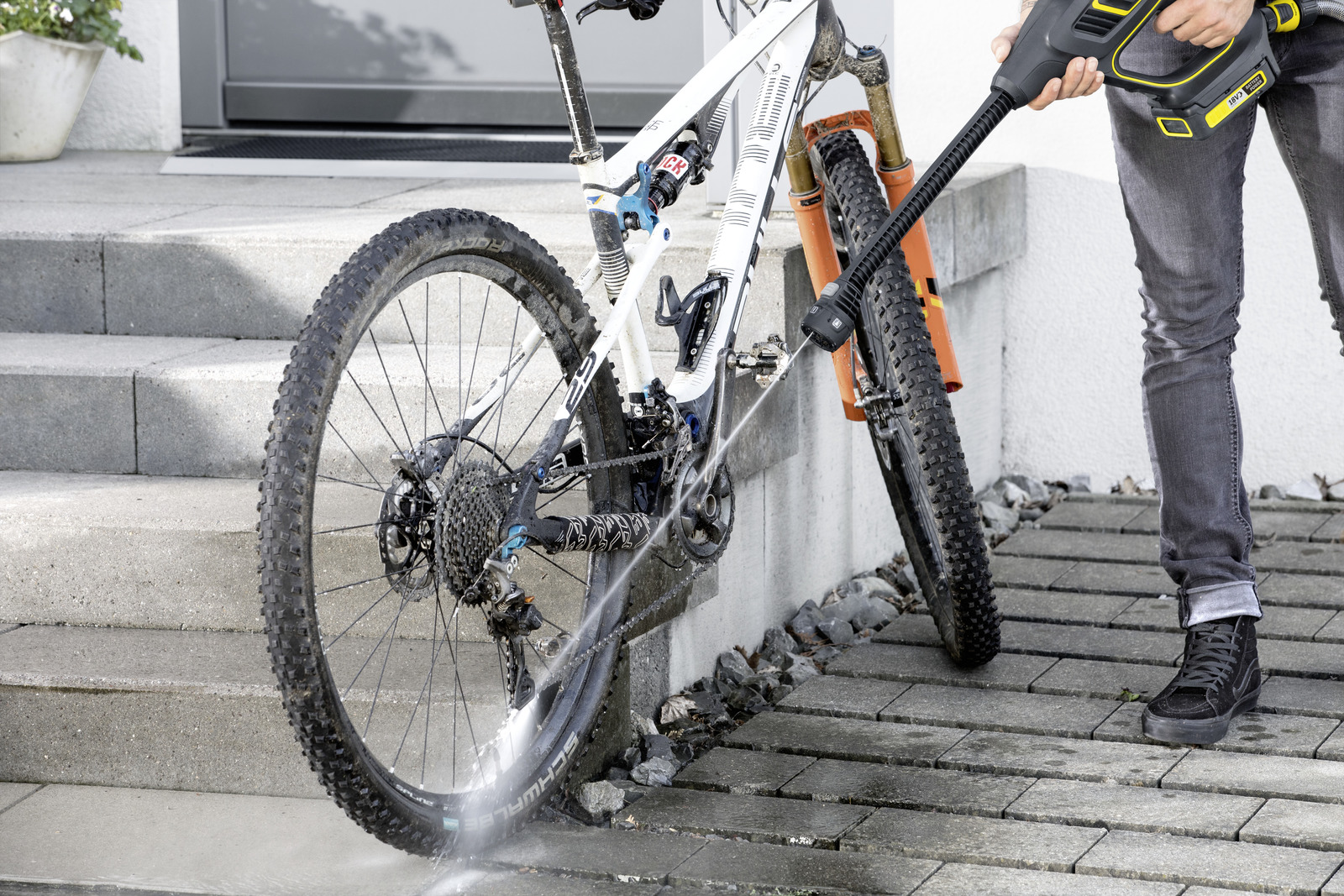 Jednotlivé trysky:• Bodový paprsek: Čištění kloubů, štěrbin a úzkých mezer a odstraňování nečistot• Plochý proud: Čištění povrchů a předmětů• Opláchnutí stěrky: Opláchnutí uvolnění nečistot• Trysková mlha: Čištění prachu nebo pylu z rostlin při mírném zalévání• Proudový paprsek: Zalévání rostlin