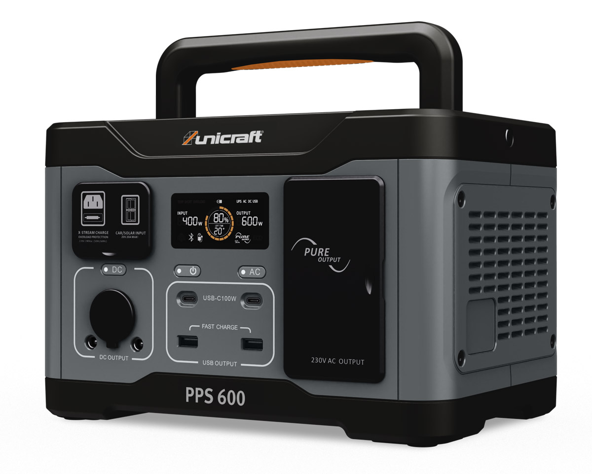 Hledáte spolehlivý zdroj energie, který vás nezatíží, ale přesto utáhne všechnu vaši elektroniku? Unicraft® PPS 600 je se svou váhou 7 kg a integrovaným držadlem stvořena pro život v pohybu. Srdcem stanice je pokročilá LiFePo4 baterie, která na rozdíl od levnějších variant netrpí na přehřívání a udrží si svou kapacitu po více než 2000 nabíjecích cyklů. Ať už potřebujete nabít dron na vrcholu hory, napájet autochladničku v kempu nebo zajistit záložní napájení UPS pro svůj domácí router, PPS 600 je díky ultra-rychlému nabíjení připravena k akci za pouhých 72 minut.