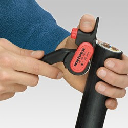 Profesionální nástroj pro odstraňování plášťů od průměru 25 mm – KNIPEX 16 40 150 K odstraňování plášťů kabelů kruhového průřezu od průměru 25,0 mm. Odstraňují všechny kabelové pláště standardních vedení. Vhodné pro obvodový a podélný řez. Hloubka řezu…