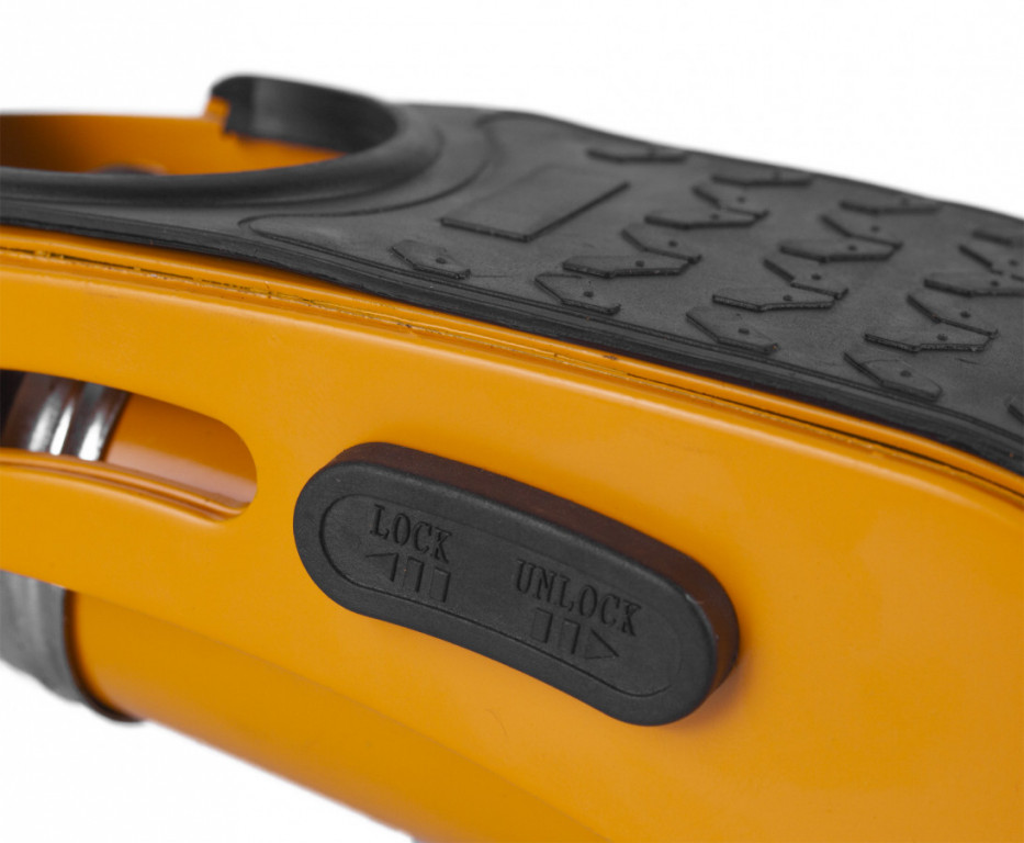 Zesílená konstrukce odolá i náročnějšímu nasazení, pedál lze v sešlápnuté poloze zajistit integrovanou pojistkou. Malé rozměry umožňují snadné skladování (např. v kufru auta jako součást nouzové výbavy).