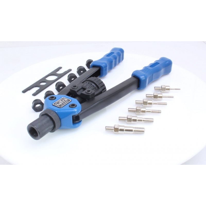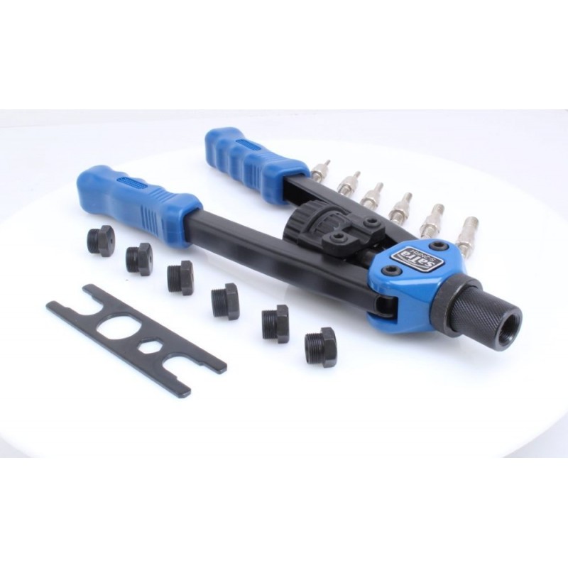 Nýtovací kleště pákové, obouruční, na maticové nýty M3 – M10, s adaptéry – SATRA S-2NRH