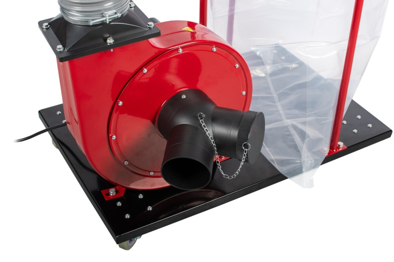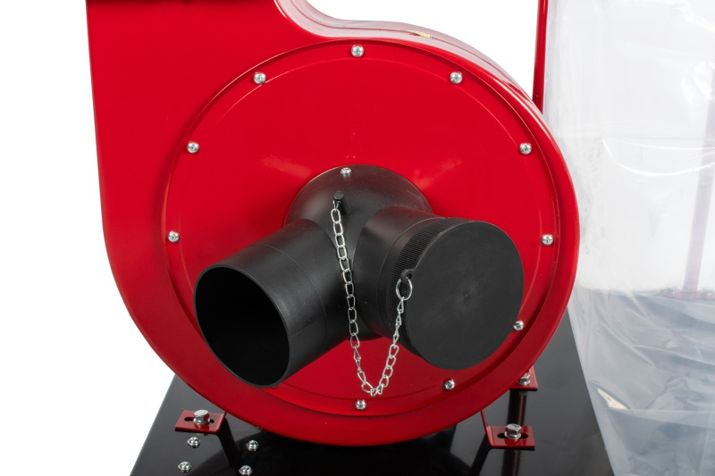 Hlavní vstup má Ø 125 mm. Přiložený Y-konektor umožňuje připojení standardních 100mm hadic pro dřevoobráběcí stroje.