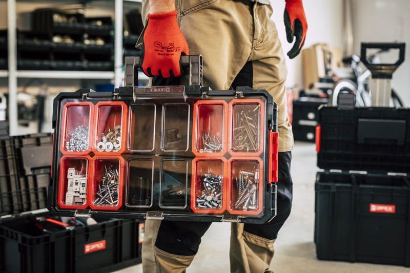 Ideální na uložení a přenášení drobností pro autoservis, dílnu apod. (spojovací materiál – šrouby, matice, hřebíky a další), menších i větších kusů nářadí (gola hlavice, bity, ale i klíče, kratší šroubováky apod.).