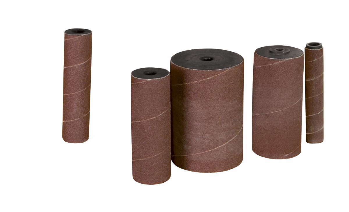 - Standardní balení obsahuje 5 pogumovaných brusných válců o průměrech: 13 mm, 19 mm, 26 mm, 38 mm a 51 mm. Pro každý válec je dodán i odpovídající brusný papír (K80) a vložka stolu.