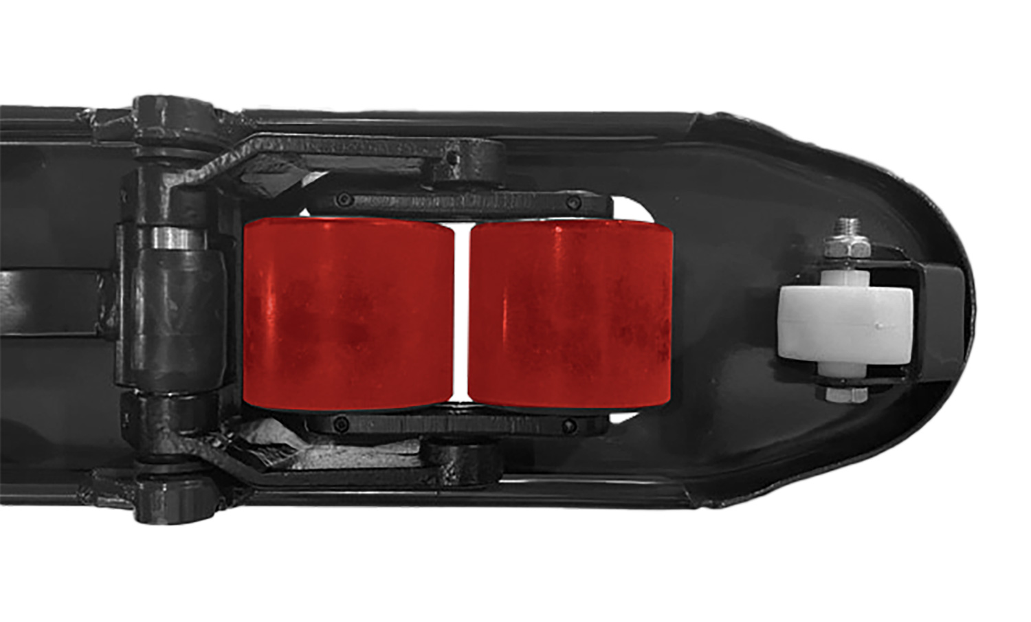 - Řiditelná kola a dvojitá vidlicová kolečka z polyuretanu