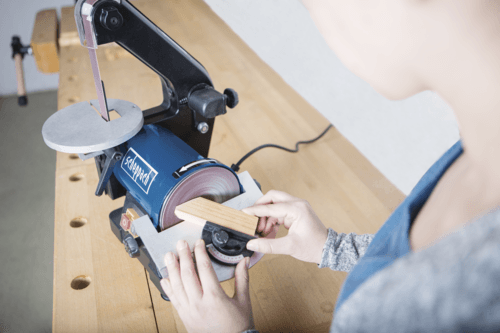- Pásová bruska je vhodnější pro broušení delších ploch, odstraňování většího množství materiálu a hrubší tvarování. Kotoučová bruska se lépe hodí pro přesné broušení konců, zaoblování hran, práci na menších detailech a úhlové broušení pomocí stolku a úhlového dorazu.