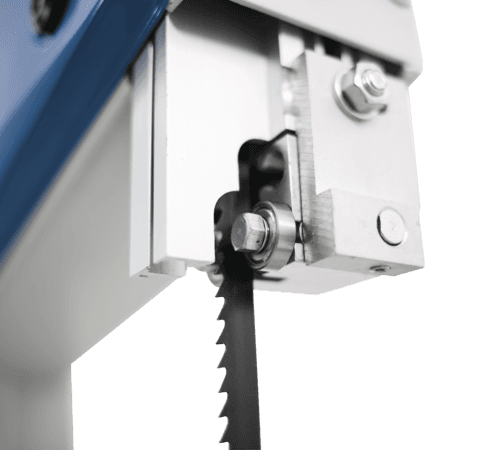 - Toto provedení vodičů zajišťuje velmi přesné a stabilní vedení pilového pásu bez nežádoucího vychylování. Leštěný povrch minimalizuje tření a opotřebení pásu, zatímco ložiska zajišťují hladký chod a přispívají k celkové přesnosti řezu a delší životnosti jak pásu, tak vodících prvků.