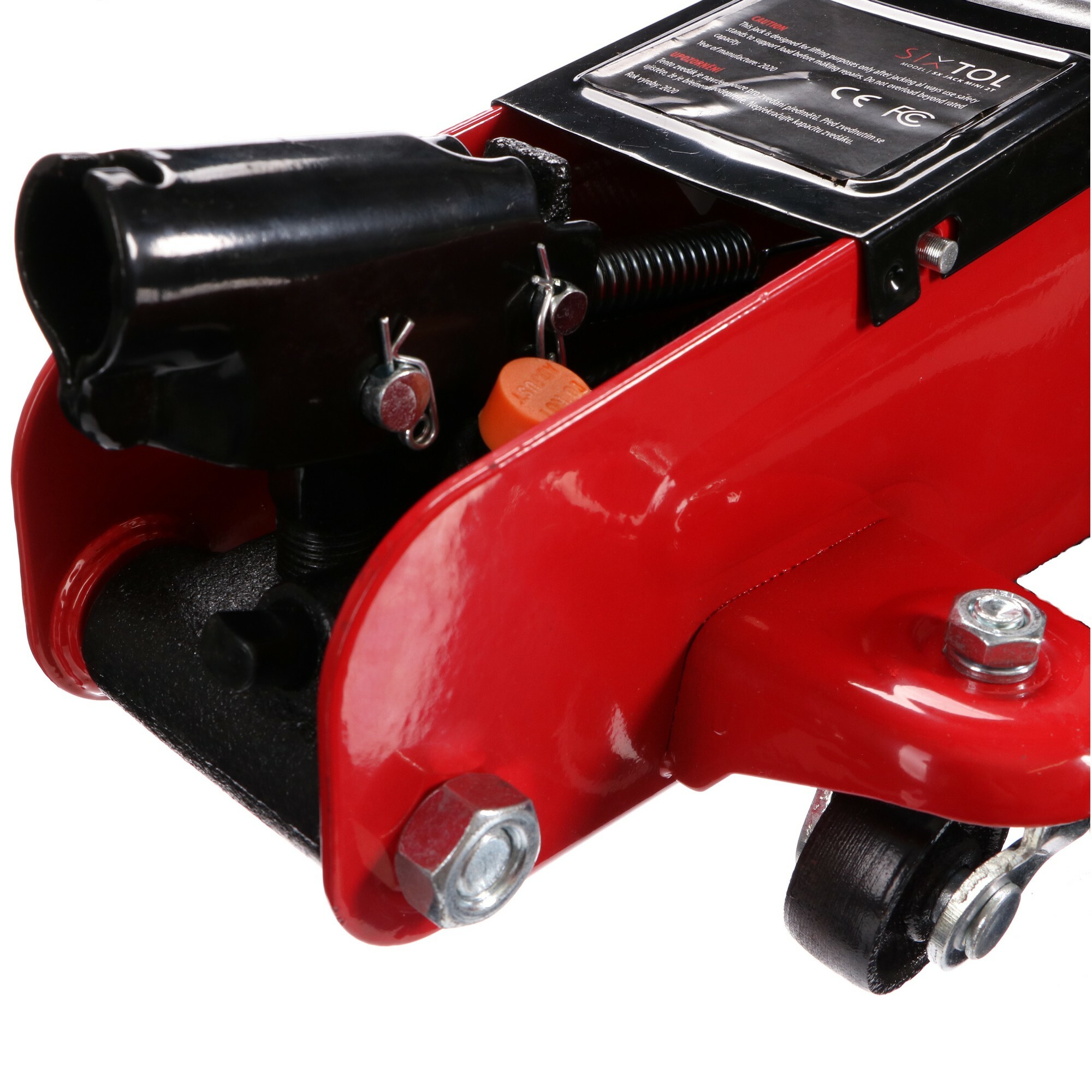 Hever – hydraulický pojízdný mini zvedák, nosnost 2000 kg, s kovovými kolečky a madlem – SIXTOL MINI JACK SX3008