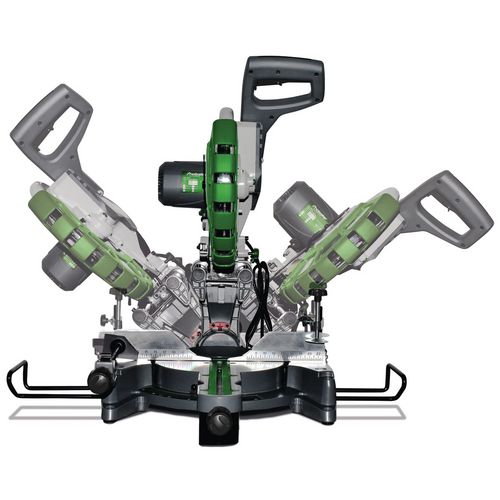 - „Dvojité nastavení úkosu“ znamená, že můžete nezávisle nastavit náklon pilové hlavy (obvykle vlevo, u některých modelů i vpravo) a zároveň otočení pracovního stolu pily (vlevo i vpravo). „Plynulé“ značí, že nastavení není omezeno jen na předdefinované zarážky, ale lze úhly nastavit libovolně v daném rozsahu.