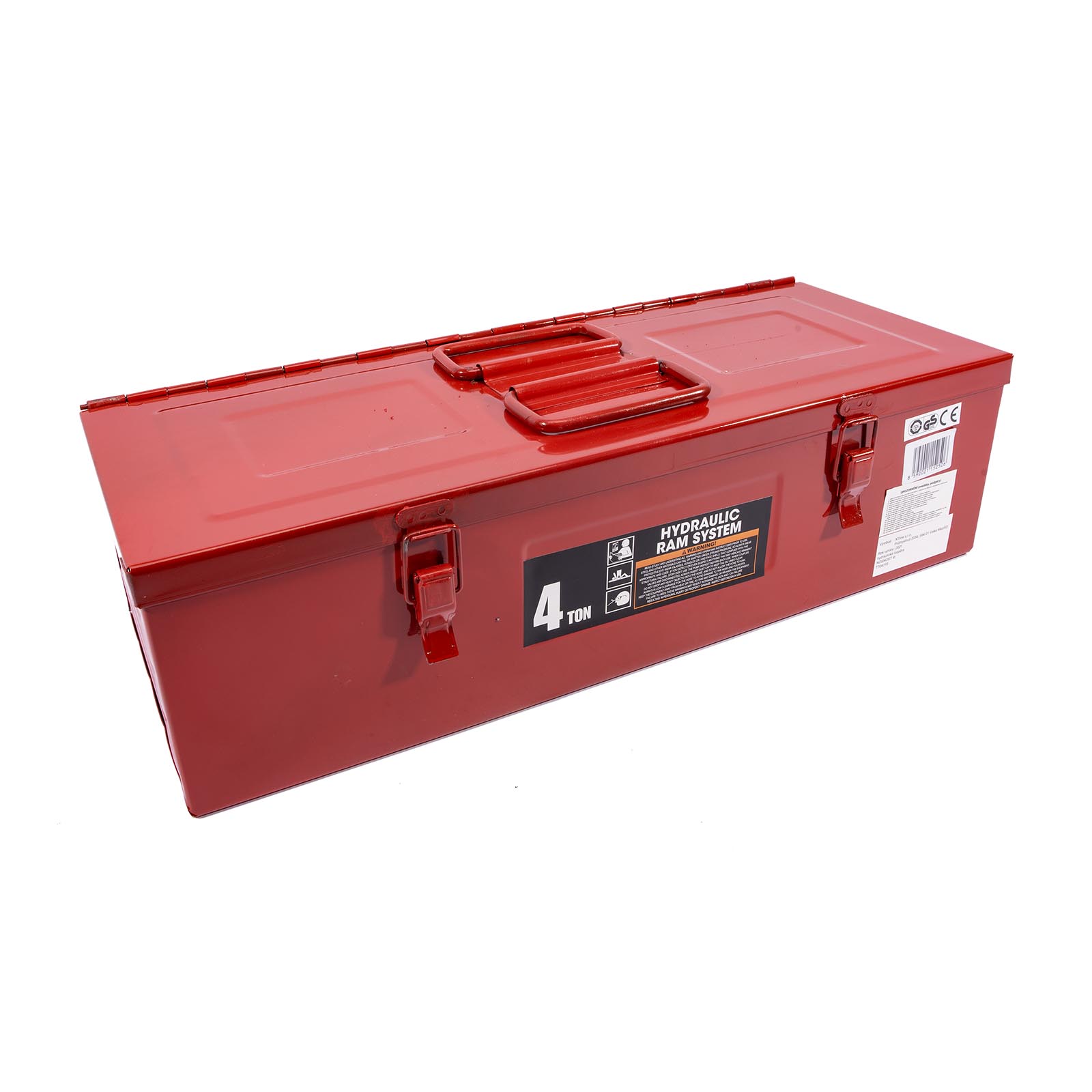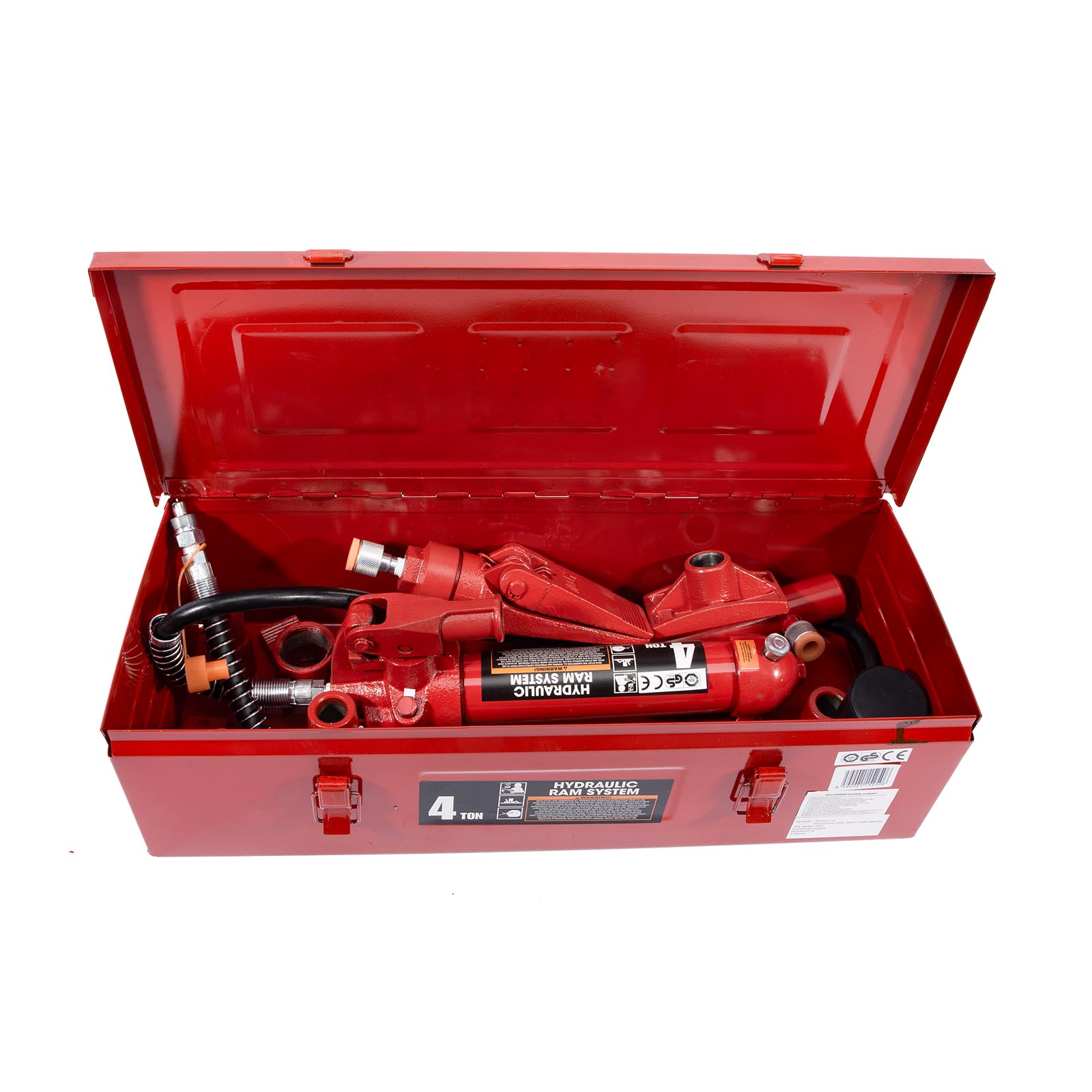 Hydraulická rozpěra s rozpínací silou 10tun v kufru pro opravování karoserií vozidel. Lze využít pro rozpínání, stlačování, zvedání a natahování ve vertikálních i horizontálních směrech. A to i v těžko dostupných místech. Nosnost 10000kg. Min. délka rámu 460mm; max. zdvih rámu: 150mm Masivní kolečka pro snadnou manipulaci s kufrem. Prodloužená tyč: 127,250,456,685mm. Zoubková násada, rozevírací klín, gumová násada, opěrná deska narážecí špička, vyhazovací špička, klobouček s rozštěpem V podstavec, šroubový konektor pumpa do 10t, vyklepávací zařízení, hydraulická hadice.