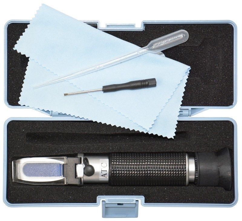Obsah balení:1 ks refraktometr pro měření objemových procent alkoholu1 ks praktické a mechanicky odolné plastové pouzdro1 ks pipeta pro odběr vzorku1 ks šroubováček na kalibraci přístroje1 ks antistatický čisticí hadřík na optický hranolUpozornění: Speciální kalibrační roztok není součástí balení!