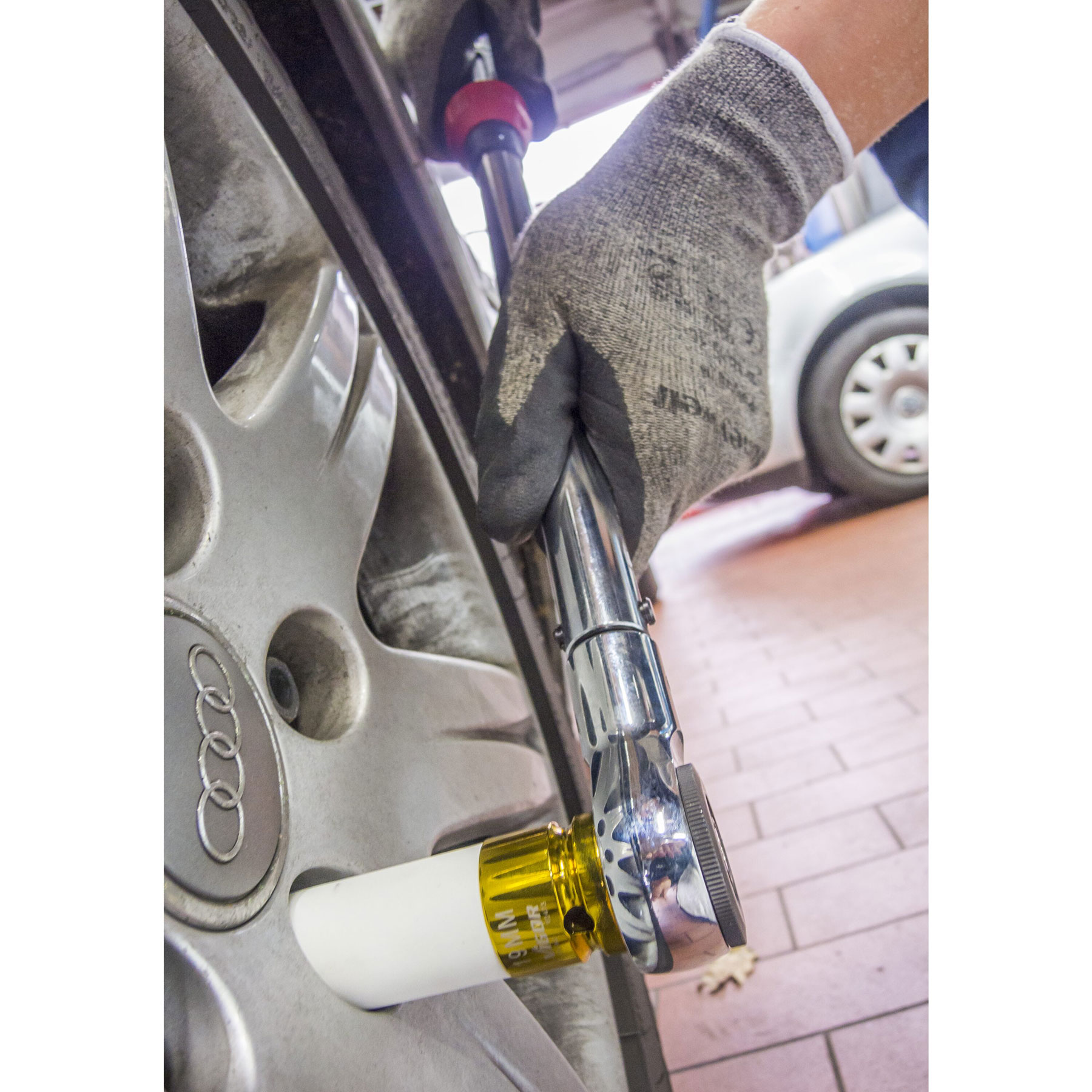 Ty jsou v provedení s ochranným potahem, který zabraňuje poškození hliníkových disků při utahování kolových šroubů pneumatickým utahovákem.
